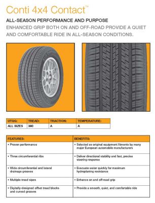 Подробные характеристики автомобильных шин CONTINENTAL Conti4X4Contact, типоразмеры, цены, характеристики. Купить шины CONTINENTAL Conti4X4Contact в Судаке можно в нашем интернет магазине. Доставка осуществляется по всему Крыму.